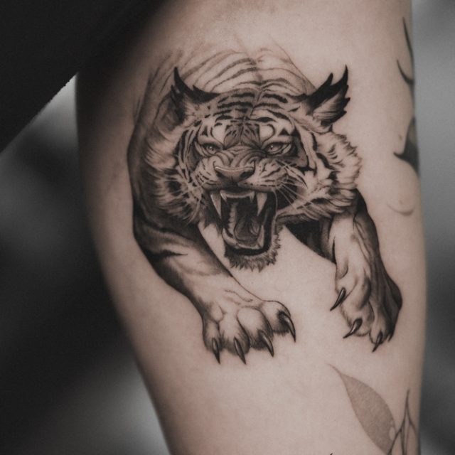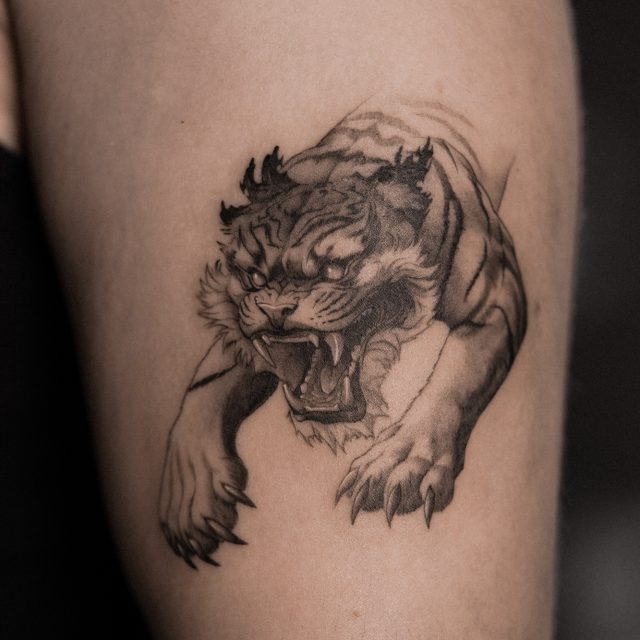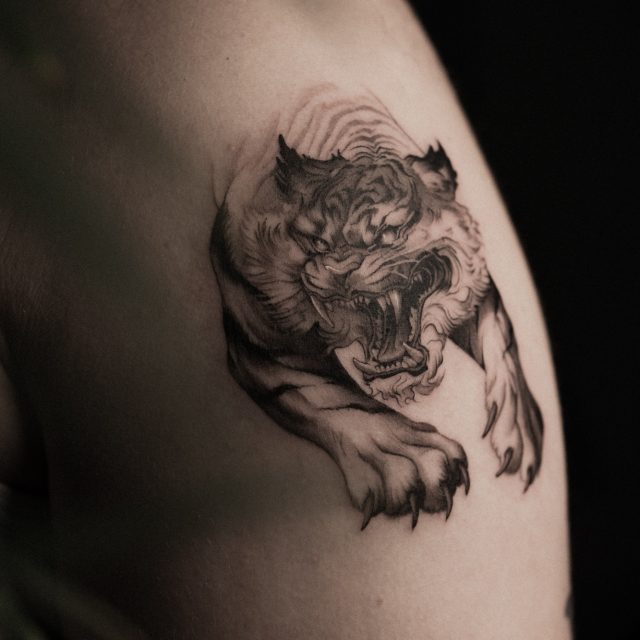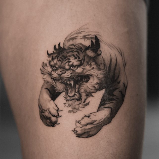 kombiniert die rohe Kraft des Tigers mit mystischer Energie. Der Name setzt sich aus „Ma“ (魔, Dämon, magische Kraft) und „Tora“ (虎, Tiger) zusammen, was die Verbindung von Wildheit und spiritueller Stärke symbolisiert. Dieser Stil vereint Natur und Mystik, ideal für alle, die ihre innere Kraft und Freiheit zum Ausdruck bringen möchten.